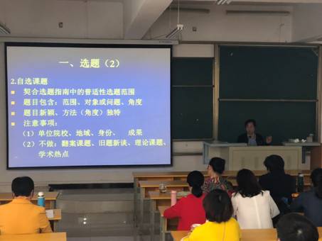 副院长雷升录先后从选题、论证、佐证、申报书填报注意事项等四个方面作了详细讲解,重点强调了项目选题依据指南应选择“普适项目”类,选题角度要新颖独特;课题论证需注重研究问题之间的逻辑关系,标题要简明、清晰,统括力强,难点应有解决方法,最后就申报书撰写过程中容易出现的细节问题进行了指导。
