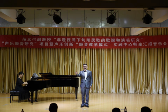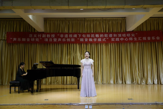 6月27日晚,范义付副教授“非遗视阈下旬阳民歌的歌谱和演唱研究”“声乐颤音研究”项目暨声乐创新“颤音教学模式”实践中心师生汇报音乐会在澳门信誉江北1401演艺厅成功举办。