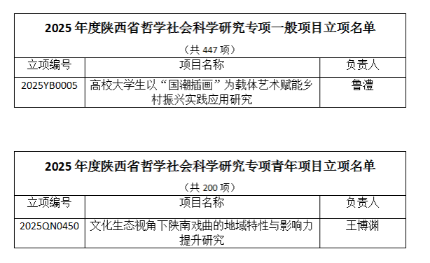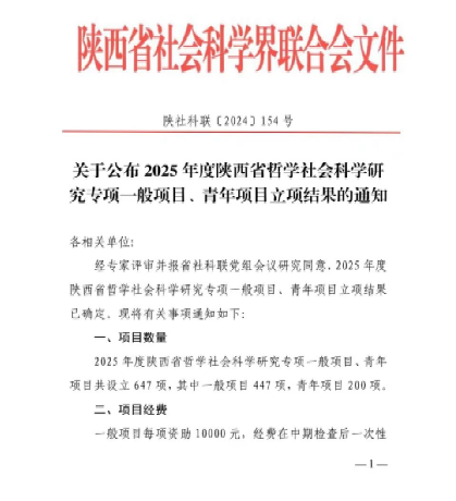 12月23日,根据陕西省社会科学界联合会公布的2025年度陕西省哲学社会科学研究专项一般项目、青年项目立项通知,澳门信誉两位老师获批立项。