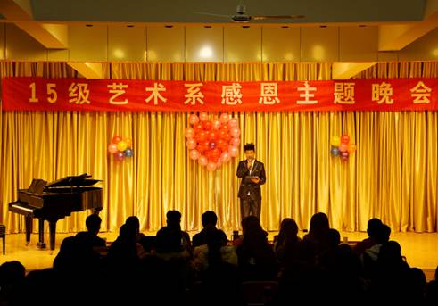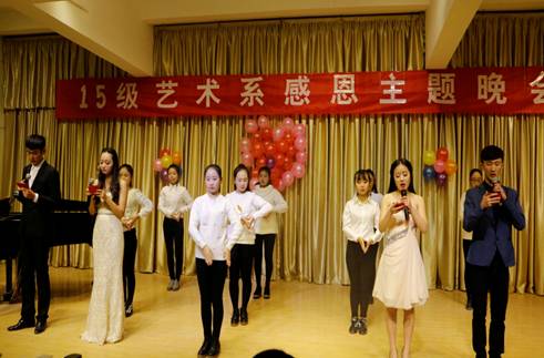 感恩教育作为大学生思想政治教育的新路径,为促进学生全面发展,实现德育目标,建设和谐校园,构建和谐社会提供有力保障。根据校团委关于在2015级新生中开展感恩教育活动的工作安排,艺术系团总支在校团委、系党总支的领导下,认真贯彻,积极开展以“感恩存心,有爱为伴”为主题的感恩系列活动。20151125日晚,我系2015级音乐学专业在江北校区1401教室举行感恩主题晚会。参加晚会的有系党总支书记冯丰收、系学工办主任刘泽桢、2014级辅导员艾蕾、2015级辅导员鲁澧以及2015级全体同学。