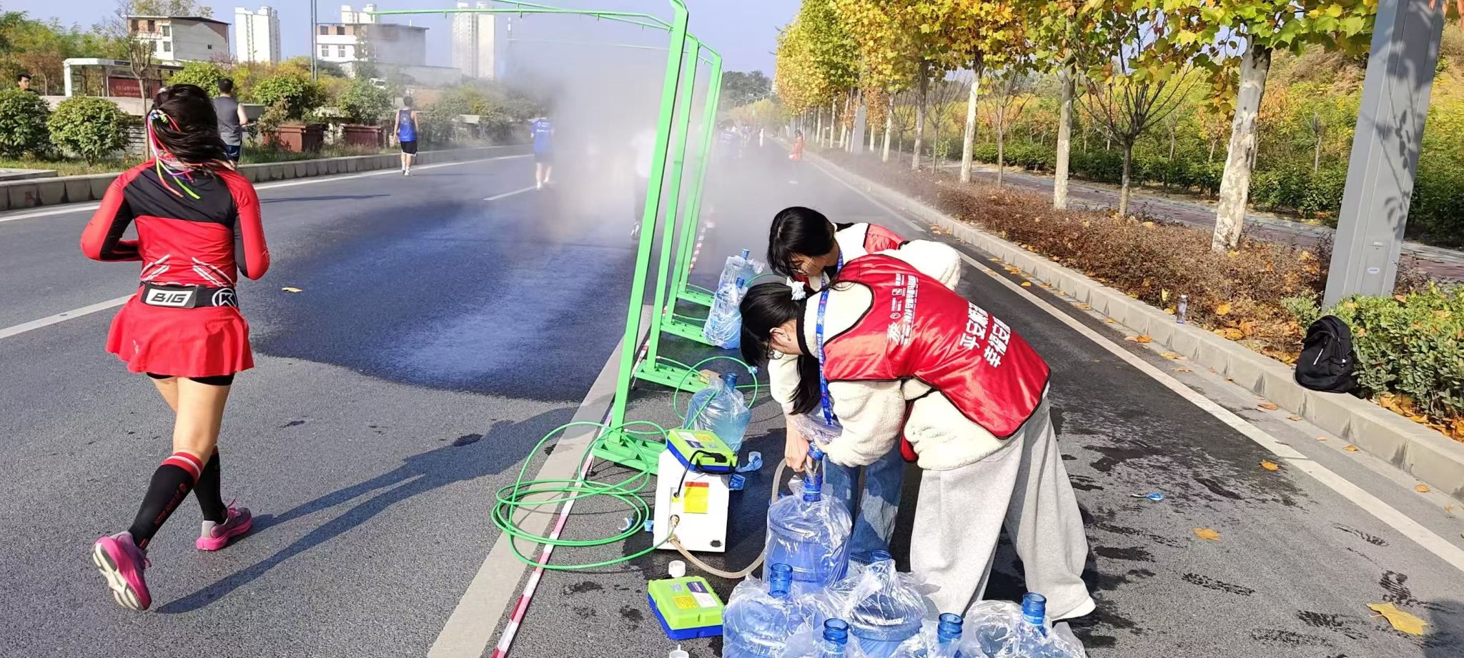 比赛当日,澳门信誉最好十大平台的志愿者们早早到达现场。他们统一着装,精神抖擞,提前进入工作岗位准备赛前相关事宜。比赛过程中,志愿者们分布在各个关键点位。有的在起点和终点引导运动员进入正确的赛道,维护现场秩序;有的在补给站,快速而准确的为选手递上饮用水和补充能量的食品;还有的沿途为运动员们加油助威,他们热情的笑脸和响亮的加油声成为选手们坚持奔跑的动力。