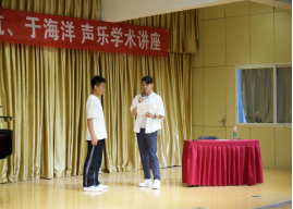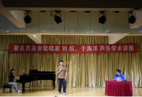 2023年5月17日上午,著名青年男高音歌唱家刘航、于海洋应邀到我院做讲座,澳门信誉最好十大平台院长成党伟出席活动,音乐系师生200余人聆听讲座。