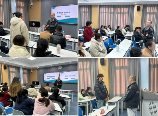 招聘会上,原老师分别从学校简介、企业文化、开设课程、校区情况及环境、招聘条件、工资待遇、职业规划等方面详细阐述了机构的办学理念、核心思想以及工作用人要求,为美术学专业学生展示了多元的就业可能,赢得了同学们的高度关注;随后,青卓艺术机构创始人马老师分享了自己的办学历程,同时给即将步入社会的学生提出以下建议:一是要不断提升自己的专业能力;二是要脚踏实地,不要好高骛远;三是要勤学善思,不要懈怠自满,四要勇于实践,不要拈轻怕重。