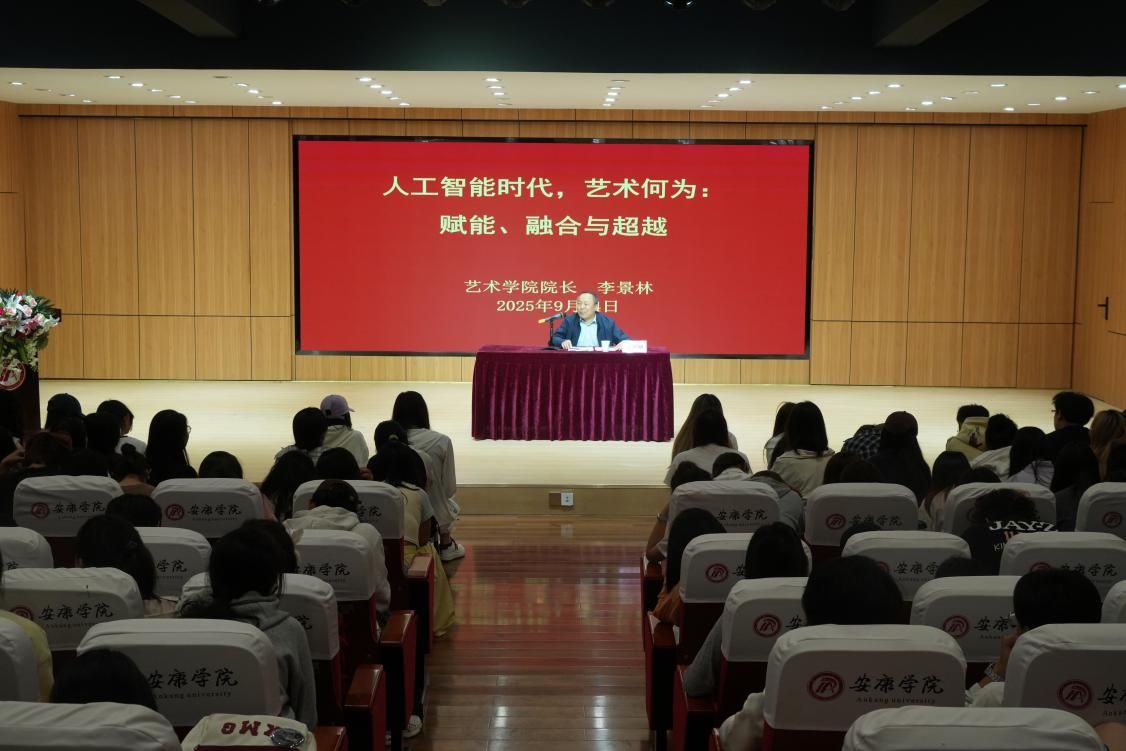 9月24日下午,澳门信誉最好十大平台2025级新生齐聚1401教室,迎来澳门信誉最好十大平台院长李景林以《人工智能时代,艺术何为》为题的首场入学教育讲座,此次讲座聚焦人工智能浪潮对艺术领域带来的变革与机遇,助力新生快速构建专业认知框架,明晰大学学习方向,提前做好应对行业新挑战的准备。为新生们开启了一场深度的专业启蒙之旅。