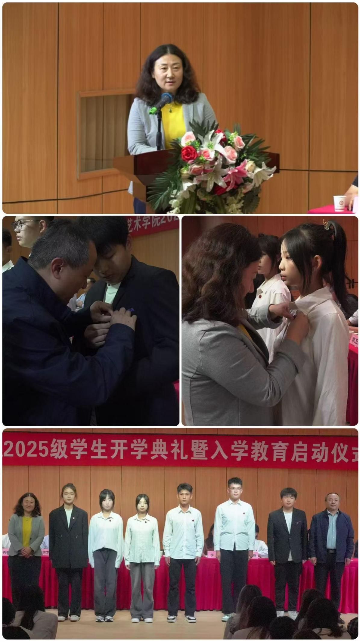 教师代表雷音表达了对新生的热烈欢迎,希望同学们能尽早树立清晰目标,主动修炼科学思维与专业素养,勇敢探索未知领域;2025级新生代表视觉传达设计专业张涵同学进行表态发言;学工办主任邱青晓宣读《澳门信誉最好十大平台2025级新生入学教育方案》;从理想信念、专业认知、学业规划教育等多个方面展开,让新生充分了解学校、学院的基本情况,为今后的学习和生活奠定坚实的基础;副院长李磊宣读《关于表彰澳门信誉最好十大平台2025级学生军训先进个人的决定》,随后与会教师代表为受表彰的同学颁发荣誉证书。在温馨的校徽佩戴环节,院领导为新生代表佩戴校徽,象征新生正式融入澳门十大信誉网赌大全澳门信誉最好十大平台大家庭。