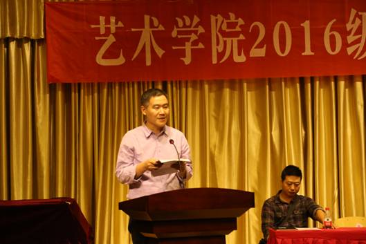 雷升录副院长为2016级新生致欢迎词,从学习的主被动方式的转变谈起,希望新同学为四年青春年华做好规划。教导新生们根据自己的特点选择更适合自己的艺术个性表现和文化知识学习的路径。并从大学德育教育、文化知识汲取、技能课程学习者三个方面给予学生以指导性意见,激励新生充满信心,插上飞翔的翅膀,迎接大学四年的学习、生活、工作的种种挑战。