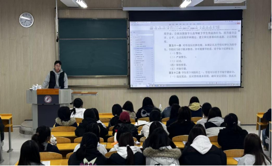 班会上,辅导员老师们着重讲解了课程考核与成绩记载、转专业与转学、休学与复学等关键流程,明确了学业预警机制的具体标准,提醒新生重视日常学习,避免出现学业问题。针对奖惩制度,老师们详细解读了各类奖学金评定的条件、评选流程以及“三好学生”、“优秀学生干部”等荣誉的申报要求,同时也对违反校纪校规的处分条款进行了重点说明,通过真实案例剖析,让新生深刻认识到遵守纪律的重要性。