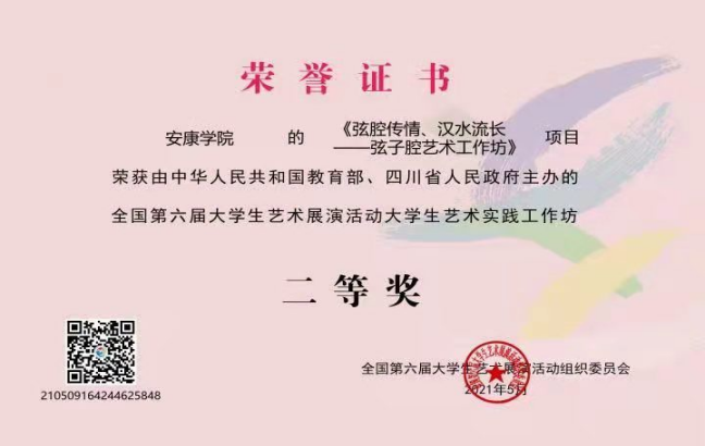 全国第六届大学生艺术展演活动大学生艺术实践工作坊获得全国二等奖