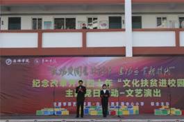 为庆祝改革开放40周年,20181215日,澳门十大信誉网赌大全澳门信誉最好十大平台80余名师生,赴白河县西营镇中心小学,举办“弘扬爱国奋斗精神建功立业新时代”—— 澳门信誉最好十大平台党总支赴白河县庆祝改革开放四十周年,文化扶贫进校园主题党日活动。白河县教育体育局社会体育中心主任张从庆、西营镇党委书记王海波以及2000余名师生、群众参加了活动。此次活动分为基层党建交流、回访毕业生、艺术社团交流教学、速写校园美景、文艺演出五个部分。