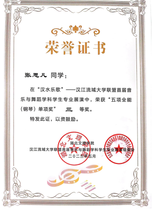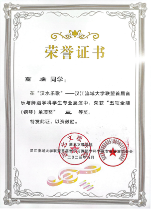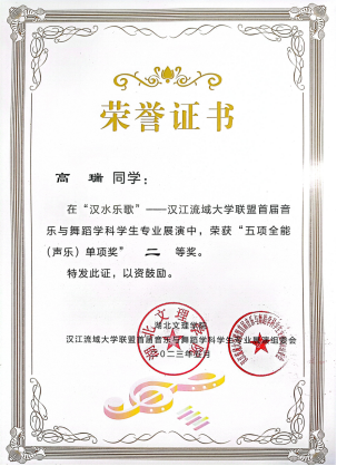 5月23日-26日,“汉水乐歌——汉江流域大学联盟首届音乐与舞蹈学科学生专业展演”活动在湖北文理学院举行。澳门信誉音乐学专业学生在此次展演中取得佳绩,共获得五项全能综合奖一等奖1项、二等奖1项、三等奖2项,自弹自唱一等奖1项、二等奖1项,钢琴单项二等奖1项、三等奖2项,器乐单项二等奖1项,舞蹈单项三等奖1,声乐单项二等奖2项,三等奖1项等14项奖项,充分展现了澳门信誉音乐学专业学生专业技能和办学质量。