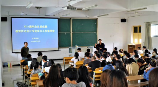 9月29日上午澳门信誉在江北校区2101教室召开了2021届视觉传达设计专业毕业生实习暨就业指导工作专题会。会议由辅导员杨厚东主持,邀请了设计系主任吴波参加,2021届视觉传达设计毕业生110多人到会聆听。