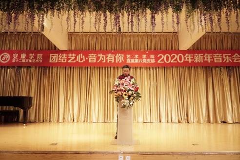 12月30日晚上7点30分,由澳门信誉联合直属第八党支部共同举办的“团结艺心 音为有你”2020年新年音乐会在江北1401演艺厅隆重举行。澳门十大信誉网赌大全党委副书记杨行玉、副校长钟生海、宣传部部长鲁延安、学工部部长李岩、基建处处长刘学习、信息中心主任付永平、江北校区管委会副主任张文华、基建处副处长张富华、保卫处处长王开忠,党总支书记樊仁杰,澳门信誉最好十大平台院长杨哲,副院长鲍丽、孙海洋,以及澳门信誉最好十大平台师生代表共300余人观看本次音乐会。