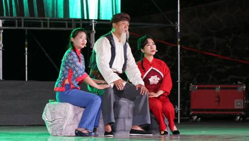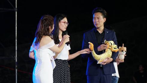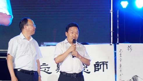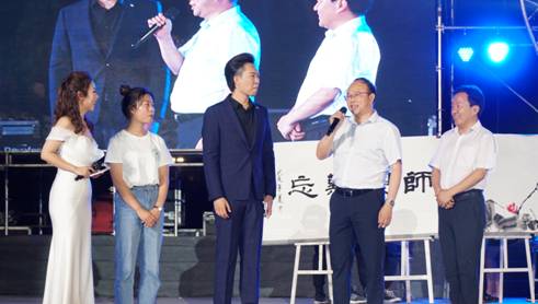 在美术、设计教学成果展示的《墨舞龙文》节目中,设计系毛绒玩具制作、环境艺术设计作品以及2019届美术专业毕业生为母校创作的书画作品,赢得了现场观众热烈的掌声。党委副书记杨行玉、副校长钟生海代表学校接收了书画作品,杨行玉老师现场以诗抒怀,表达了对19届毕业生的殷切希望、钟生海老师深情寄语,抒发了师生间浓烈的感情,校领导的真情实感将晚会推向了高潮。