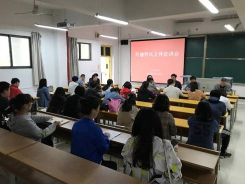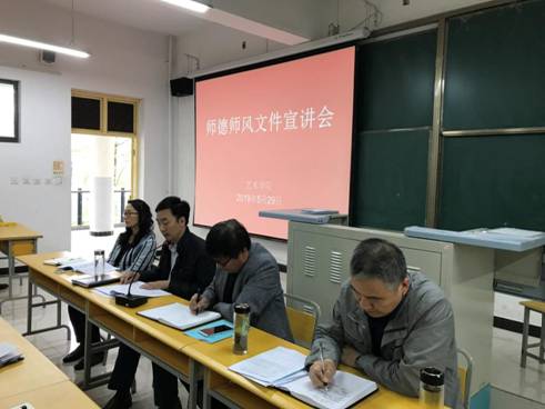 5月29日下午,澳门信誉最好十大平台全体教师在江北2202室召开了师德师风建设与考评政策宣讲会,院长杨哲主讲。