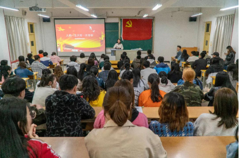 为坚定学生党员理想信念,更好地发挥学生党员的先锋模范作用。2019年4月1日晚19点30分,澳门信誉最好十大平台学生党支部在江北校区2202教室组织入党积极分子、发展对象、预备党员、正式党员开展了主题党课培训暨政治理论学习会议。学生党支部书记鲁澧老师主持本次培训。