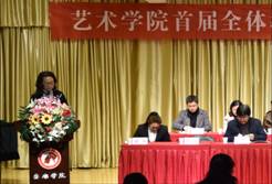 澳门信誉最好十大平台院长杨哲向大会作了题为《提升内涵、彰显特色,谱写澳门信誉最好十大平台跨越发展的新篇章》的工作报告,报告第一部分分别从发挥基层党建引领作用,为学院发展提供坚强保障、规范教学管理、推动教学改革,不断提高人才培养质量、发挥学科专业优势,挖掘地方艺术文化资源,科研与社会服务工作成效显著、“引、培、用”相结合,做好高层次人才引进和师资队伍建设工作、以生为本、做实做细,不断加强学生管理工作五个方面对2018年工作进行了回顾。结合澳门信誉最好十大平台的实际,在第二部分和第三部分以澳门信誉最好十大平台面临问题与挑战向与会教职工明确了2019年工作思路:一是贯彻落实十九大及全国教育大会精神,进一步增强立德树人的自觉性,二是以教育部本科教学审核评估及师范专业认证为抓少,加强专业内涵建设,三是尊重艺术类学科专业、课程特点,以课程为基础,以课堂为核心,全面深化教育教学改革。四是以提高教师教研科研能力为抓手,提升教师服务地方文化发展的能力。澳门信誉最好十大平台分工会主席郭秀郭秀向大会作了澳门信誉最好十大平台2018年度分工会工作报告,报告中对澳门信誉最好十大平台分工会2018年加强制度建设,规范常规管理、加强民主管理,维护会员基本权利、坚持工会工作与党建工作相结合,提升教职工政治素质、积极开展文体活动,丰富教职工生活、密切联系群众,积极开展送温暖活动、工会经费支出情况、存在的问题和努力方向七个方面的工作向大会作了报告并提出了2019年风工会工作的基本思路。