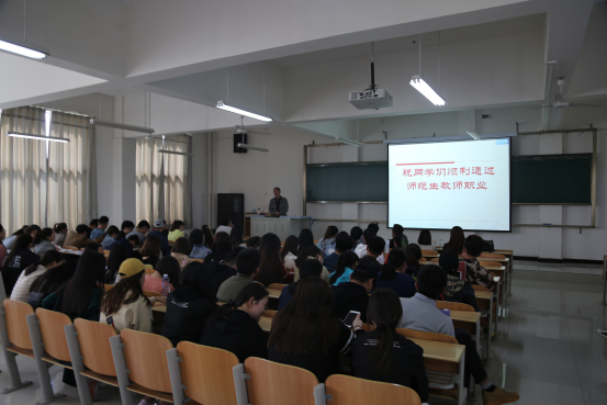 最后,孙海洋副院长希望同学们努力学习,发愤图强,通过自己的不懈努力,取得教师资格证,在提升专业能力的同时,也培养好自己的素质素养,道德情操,在教育事业上挥洒自己的汗水,成为祖国优秀人才。