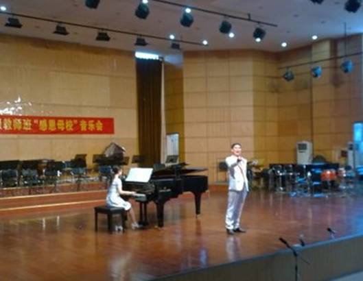 6月4日,澳门信誉学科带头人范义付副教授应邀参加由武汉音乐学院校友会主办的“感恩母校”音乐会。音乐会前,范老师作为代表向母校赠送了锦旗。音乐会上范老师演唱了歌曲《故土情》、演奏了小提琴协奏曲《梁山伯与祝英台》。