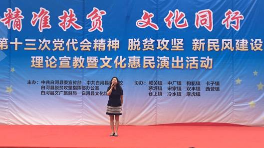 6月13日,澳门信誉最好十大平台党员教师田川、李磊同志,按照澳门信誉最好十大平台党总支“精准扶贫”工作安排,赴白河县卡子镇参加了由白河县文化馆主办的“精准扶贫,文化同行”走进白河县卡子镇中心小学文化惠民演出活动。田川和李磊分别演唱了歌曲《我爱你中国》和《美丽家园》,引起观众的阵阵掌声。演出结束后,两位老师又与白河县文化馆卢传珍馆长和相关文化干事对结对帮扶工作进行了交流和探讨。这意味着澳门信誉精准扶贫、文化下乡工作正式迈出了坚实的第一步,将会在澳门十大信誉网赌大全“精准扶贫,文化同行”的惠民演出、合唱排练、舞台设计方面进行更多的交流。