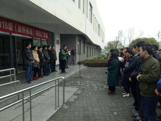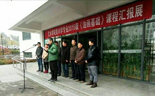 12月26日上午9点50分,在艺术楼门前举行了2015级《油画基础》课程汇报展开幕。莅临此次画展的领导老师有:澳门十大信誉网赌大全教务处副处长杨哲教授,澳门信誉最好十大平台党总支书记王辉老师,澳门信誉最好十大平台副院长雷升副教授、副院长孙海洋老师,学工办主任刘泽桢副教授,骨干教师杜敏副教授、原春鸣副教授、王胜选副教授、骆杨老师以及澳门信誉15级16级美术学专业的同学们, 本次画展由副院长孙海洋主持。