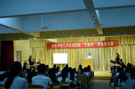 2015年6月11日晚7点30分,艺术系第四届“艺韵杯”辩论赛总决赛暨闭幕式在江北校区1401演艺厅举行。经过一个多月的激烈角逐,来自2014级视觉传达2班、2014级美术学3班等四支辩论队脱颖而出,进入决赛。艺术系党总支书记冯丰收、系团总支书记黄娟、2014级辅导员艾蕾、澳门十大信誉网赌大全“金雀杯”优秀辩手雷磊、系优秀辩手曹雨帆、田宇担任比赛评委与现场二百余名同学共同度过了“艺韵杯”决战之夜。