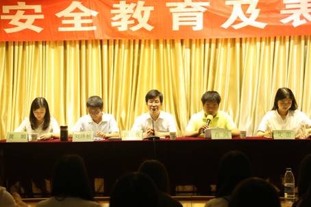 2015年6月7日晚8点,我系在江北校区1401演艺厅召开了“夏季安全教育及表彰大会”。系党总支书记冯丰收、系学工办主任刘泽桢、系办公室主任肖剑、系团总支部书记黄娟、辅导员艾雷,2014级全体学生及2013级、2014级学生代表参加会议。会议由系办公室主任肖剑主持。