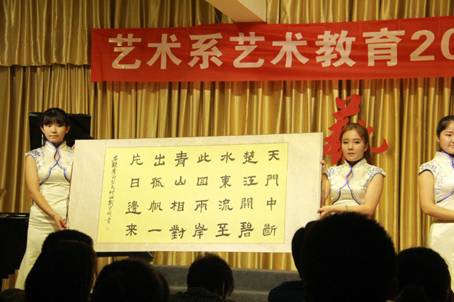 2015年5月17日晚20:00,艺术教育2012级学生“艺青春”专业技能展演在江北校区1401演艺厅拉开帷幕。本次展演以追忆青春、回首大学三年的时光作为初衷,由刘泽桢、田川老师作为总策划人,班团干部精心组织同学们积极参与,全班35名同学凝神聚力成功举办了这次展演活动。应邀观看展演活动的有系党总支书记冯丰收、系副主任雷升录、系办公室主任肖剑、艺术教育专业课老师等二百余名师生;同时还特邀了安康市儿童福利院领导、老师光临晚会现场。