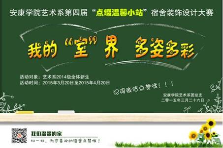 系团总支书记黄娟老师宣读了我系第四届“点缀温馨小站”宿舍装饰设计大赛的活动安排和实施方案。“点缀温馨小站”宿舍装饰设计大赛作为我系“艺术人生引领工程”的一个重要组成部分,其教育、实践、养成、美化的功能不可替代,希望团总支、系分会、各班级、各宿舍、各位同学认真落实。本届大赛有三项特色活动,一是充分利用团总支微信公众平台,开展“微信点赞”活动,以宿舍为单位,自主编辑图片,撰写宿舍宣传的微文进行新媒体形式的展示;二是充分发挥专业特色,利用专业模式,开展宿舍文化建设成果展板的评选,各个宿舍要结合自身的专业实践,相互融合,形成自己的作品进行展示,如艺术设计专业运用photoshop等软件自行编排设计,美术学专业可以手绘制作;三是进一步深入开展学生党员进宿舍、开展“墨韵书香读国学经典”等特色活动,从而实现学生道德情操、人文素养、审美情趣、创新能力的全面提升,打造艺术系独特的宿舍文化。