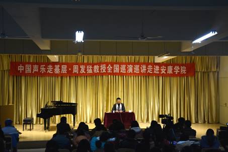 2014年12月9日14:30分,中国海政文工团男高音歌唱家周发猛“中国声乐走基层全国巡演巡讲”在澳门信誉江北校区演艺厅举行。