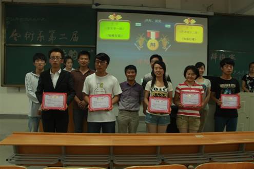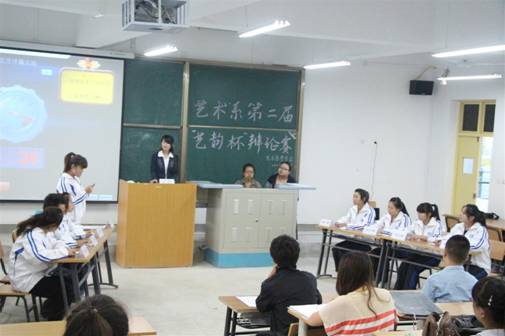 2013年6月13日晚8时,我系第二届“艺韵杯”辩论赛决赛在江北校区1401教室拉开帷幕。本场决赛的评委由系党总支书记冯丰收、学工办主任刘泽桢、学生党支部书记王毅、团总支书记黄娟及系学生会主席孙玉东担任。