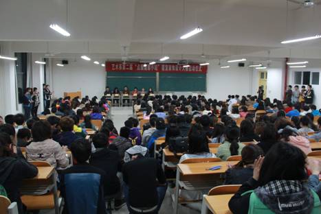 我系第二届“点缀温馨小站”宿舍装饰设计大赛启动仪式于3月24日晚7:30分在江北校区1301教室隆重举行。系党总支书记冯丰收、学工办主任刘泽桢、辅导员黄娟和王毅、教师代表郭秀和张静老师以及系学生分会学生干部和全体2012级新生共300余人参加了启动仪式。启动仪式由刘泽桢主持。