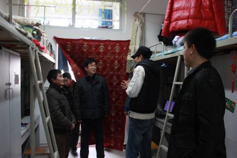 系党总支书记冯丰收亲自带领全体辅导员不定期的深入宿舍检查,发现问题及时指出,限期整改;辅导员老师坚持每周至少查宿一次,深入学生宿舍,在普查的基础上每次重点抽查两三个宿舍,系统了解宿舍的学风、舍风、卫生、安全和面临的困难等情况,在力所能及的范围解决一些问题;学生会坚持每周检查评比,不断激发全系学生积极参与到创建文明班级和文明宿舍的活动中来。