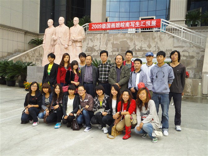 2011年10月18日到10月24日,艺术系09级美术学国画班举办的“皖南之行写生汇报展”在图书馆举行,我系主要负责人亲临现场,对每位同学的画提出好的建议和指导。