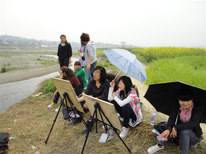 此次画展为以油菜花为主题,他们走遍了学校附近有油菜花的地方。画展形式多样,有的同学画的是速写,有的是水彩、油画、水粉等等。