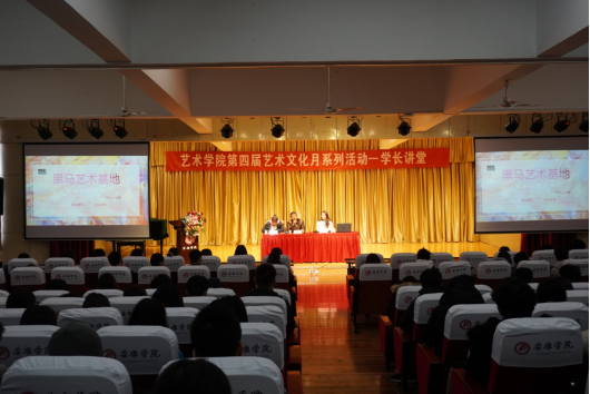 2020年11月25日下午,澳门信誉最好十大平台在江北校区1401演艺厅举办了第四届艺术文化月系列活动之学长讲堂,本次活动由2013级美术学专业优秀毕业生刘蓉主讲。刘蓉现为汉中市共青团勉县委员会副书记、汉中市青年企业家协会副秘书长、黑马艺术基地勉县校区校长。本次活动由党建专职组织员刘泽桢主持,2018级辅导员魏麟及2018级学生到场分享。