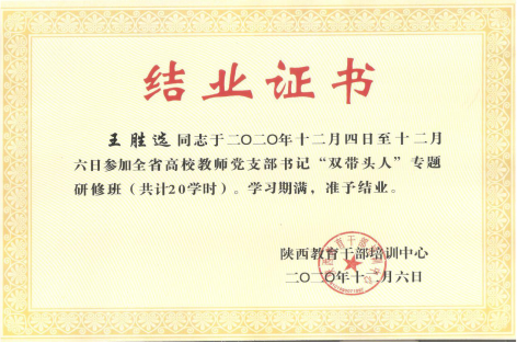 为加强澳门信誉党支部书记队伍建设,提升“双带头人”支部建设能力,推动基层党建工作和教学科研工作双促进双提高,澳门信誉选派教工一支部书记王胜选副教授参加陕西教育干部培训中心举办的全省高校教师党支部书记“双带头人”专题研修班。