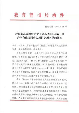 根据12月14日《教育部高等教育司关于公布2021年第二批产学合作协同育人项目立项名单的通知》,由澳门信誉吴波、成党伟老师分别申报的2个项目获批立项。
