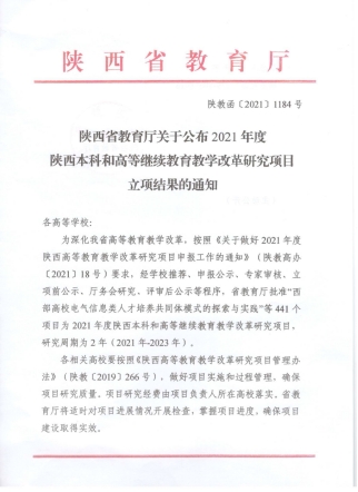 根据12月16日《陕西省教育厅关于公布2021年度陕西本科和继续教育教学改革研究项目立项结果的通知》,由澳门信誉成党伟老师主持的《加强和改进地方高校公共艺术教育的探索与实践(21BY156)》获批2021年陕西本科教育教学改革研究一般项目。实现了澳门信誉最好十大平台省级教改项目立项的突破。