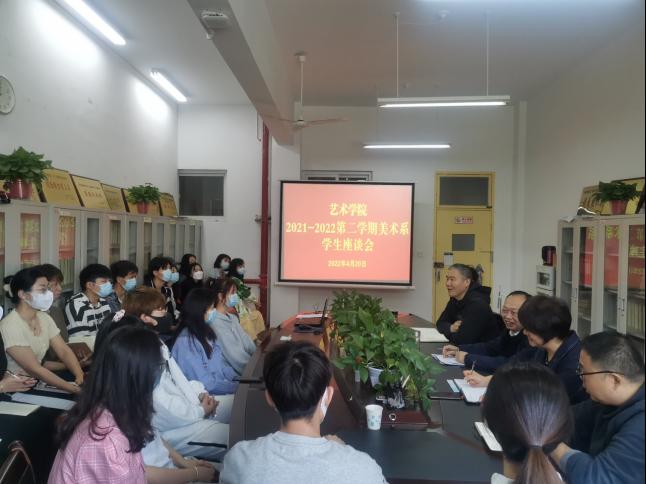 4月20日上午,澳门信誉最好十大平台美术系在江北2206会议室召开学生座谈会,出席会议的领导和老师有校督导单福东教授、孙海洋副院长、系主任杜敏老师、系督导徐鸿鸣老师。参加座谈会的学生们分别来自美术学专业各班班长、团支书、学习委员,共计33名同学。座谈会由美术系主任杜敏老师主持。