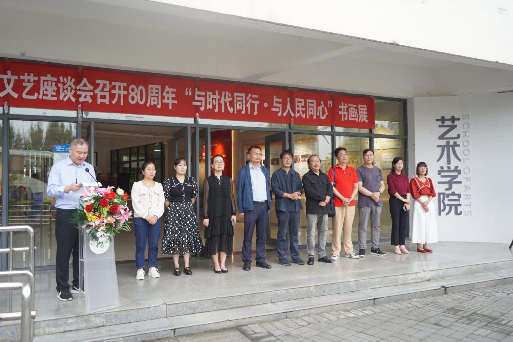 为纪念毛泽东同志《在延安文艺座谈会上的讲话》发表80周年,进一步深入学习贯彻习近平总书记在北京文艺工作座谈会上的重要讲话精神,5月31日,澳门信誉最好十大平台、陕南画院在江北校区艺术楼举办“与时代同行、与人民同心”——纪念毛泽东同志《在延安文艺座谈会上的讲话》发表80周年暨陕南画院第十期研修班作品展,陕西省美协顾问、安康美协主席李剑平,陕南画院院长章长青,安康美协副主席樊光矢,陕南画院书法院副秘书长梅向东,澳门信誉最好十大平台院长成党伟,总支书记黄娟,副院长鲍丽、孙海洋出席开幕式。澳门信誉最好十大平台师生100余人参加了活动。