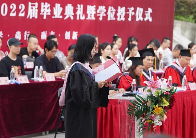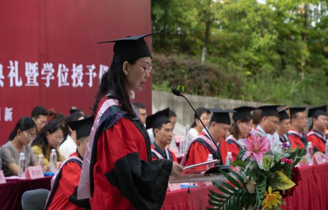 2018级美术学专业王璐璐代表毕业生对学校及老师的培养表示感谢,将不辜负老师们的殷切希望和深情嘱托,初心不改、牢记使命,做新时代有志青年、逐梦而行,成就更好的自己,为母校争光添彩。