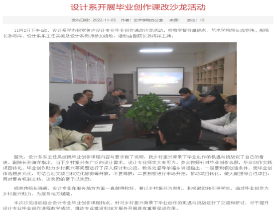 其次,澳门信誉最好十大平台积极申报一流课程3门,其中音乐学申报的一流课程《陕南民间艺术概论》有望获得省级推荐、“课程思政”示范课、双师课程等各类教育教学改革研究项目中期检查顺利完成,混改课程申报5门。澳门信誉最好十大平台邀请校督导单福东教授参加设计系“毕业论文和毕业创作的困境与挑战”课改沙龙,针对学科特点单福东教授提出了宝贵的建议和意见。