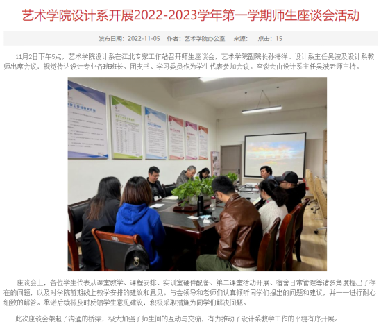 首先,澳门信誉最好十大平台对日常教学巡查工作和院系领导督导听课情况进行了检查,由于受疫情影响,澳门信誉最好十大平台课程80%都属于阶段性授课的理论实践课程,在教务处的大力协调下教学秩序井然,院系领导督导线上线下听课近20余次,教学效果良好。澳门信誉最好十大平台召开党政联席会议和教学工作会议学习了新一轮审核评估指标体系及相关政策文件学习,积极推进专业建设和专业认证工作,并对2022级人才培养方案进行了修订,对配套教学大纲进行了初步修订。美术学、视觉传达设计专业积极加大备课投入,全部使用新教案模板,在过程性材料搜集整理方面,全部使用新版非笔试考核材料考核方案。