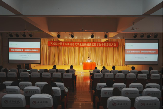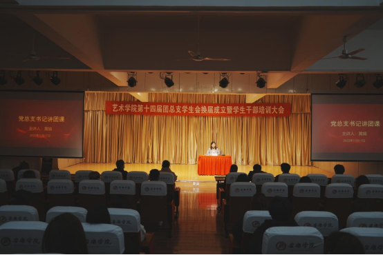 2022年11月17日晚,澳门信誉最好十大平台第十四届团总支学生会换届成立暨学生干部培训大会在江北校区1401演艺厅顺利召开。澳门信誉最好十大平台党总支书记黄娟、学工办主任鲁澧、学生党支部书记魏麟、辅导员李博、邱青晓以及校学生会、各二级学院主席团代表、澳门信誉最好十大平台全体团总支学生会成员参加了本次大会。大会由团总支书记孟莉主持。