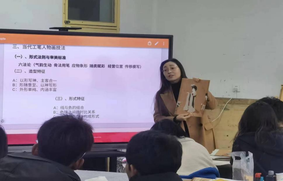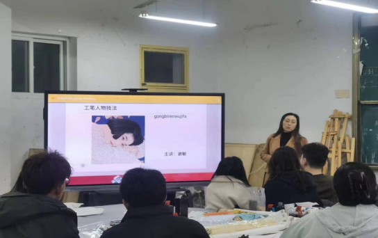2月27日上午,在江北校区艺术楼2407画室举办由谢敏老师主讲的课程思政《工笔人物》公开观摩课,副院长孙海洋等老师参加了此次公开观摩课。