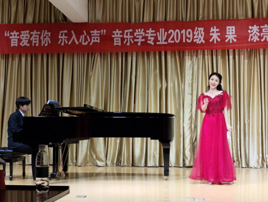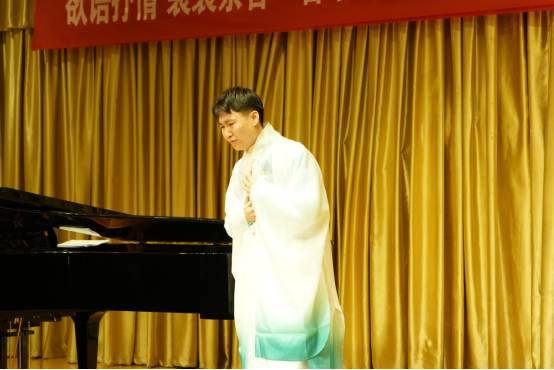 朱果同学演唱的《玫瑰三愿》《虞美人·听雨》是两首中国古诗词艺术歌曲。《一杯美酒》旋律优美、欢快,朱果同学载歌载舞的演唱将音乐会推向高潮。