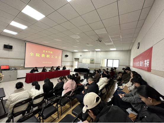 2月28日下午,澳门信誉最好十大平台在艺术楼2415教室召开全体教职工大会,传达学习学校2024年度工作会议精神。会议由院长成党伟主持。