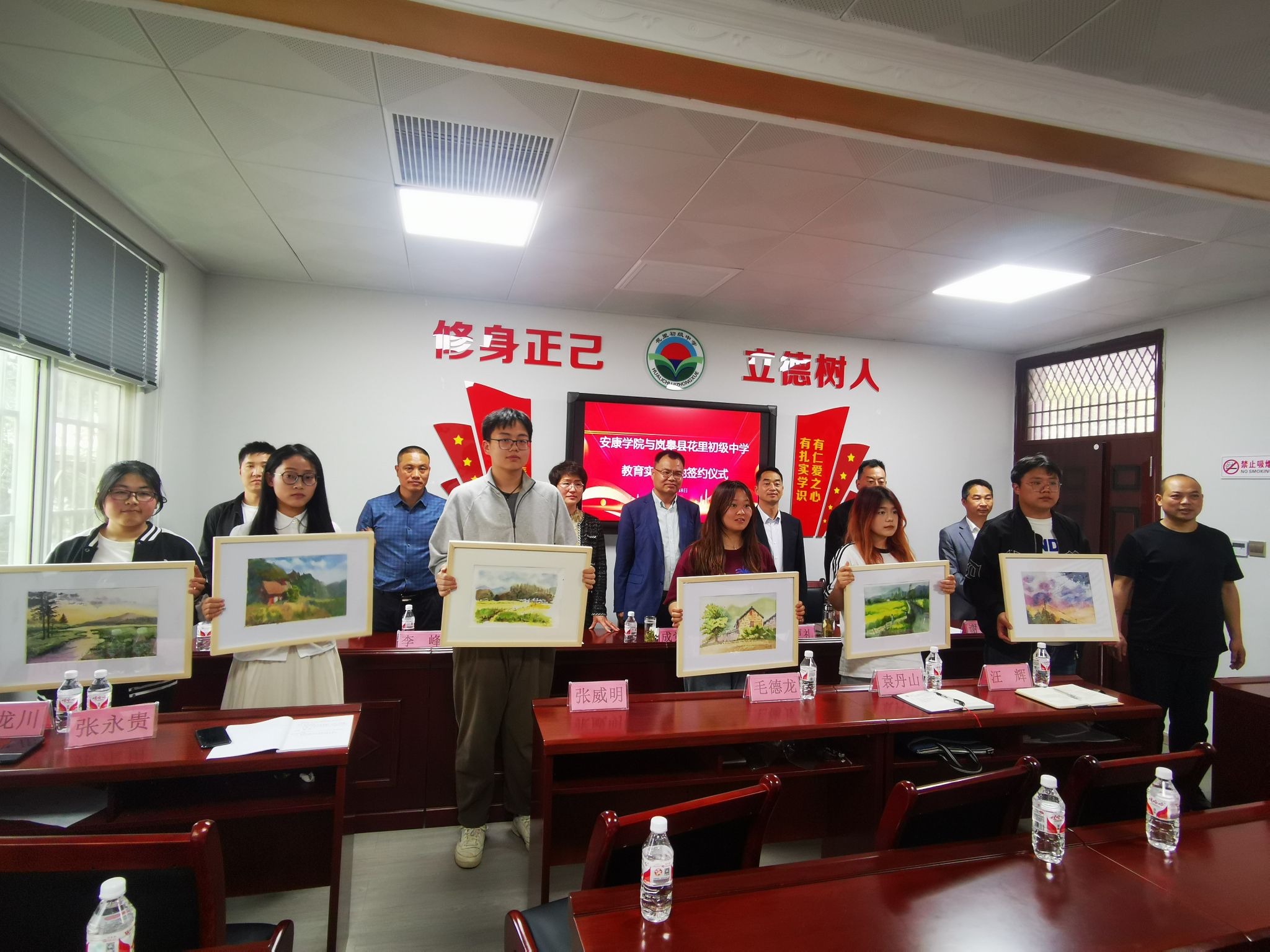随后,澳门信誉最好十大平台与岚皋县花里初级中学举行了美育实践基地签约仪式,澳门信誉最好十大平台院长成党伟和岚皋县花里初级中学校长狄邦银代表双方签约,岚皋县教育体育科技局教育衔接办主任丁更礼见证签约,活动由花里中学政教主任谢战主持。双方就共同促进美育工作签订了美育实践基地共建协议。活动中,澳门信誉最好十大平台12位同学把第一批12幅美术写生作品捐赠给花里初级中学作为美育教学资源。