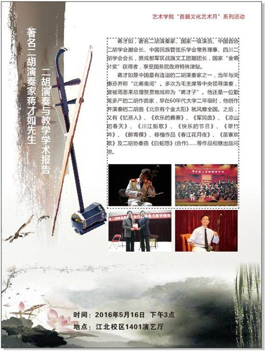 澳门信誉最好十大平台“首届文化艺术月”——著名二胡演奏家蒋才如先生学术报告公告