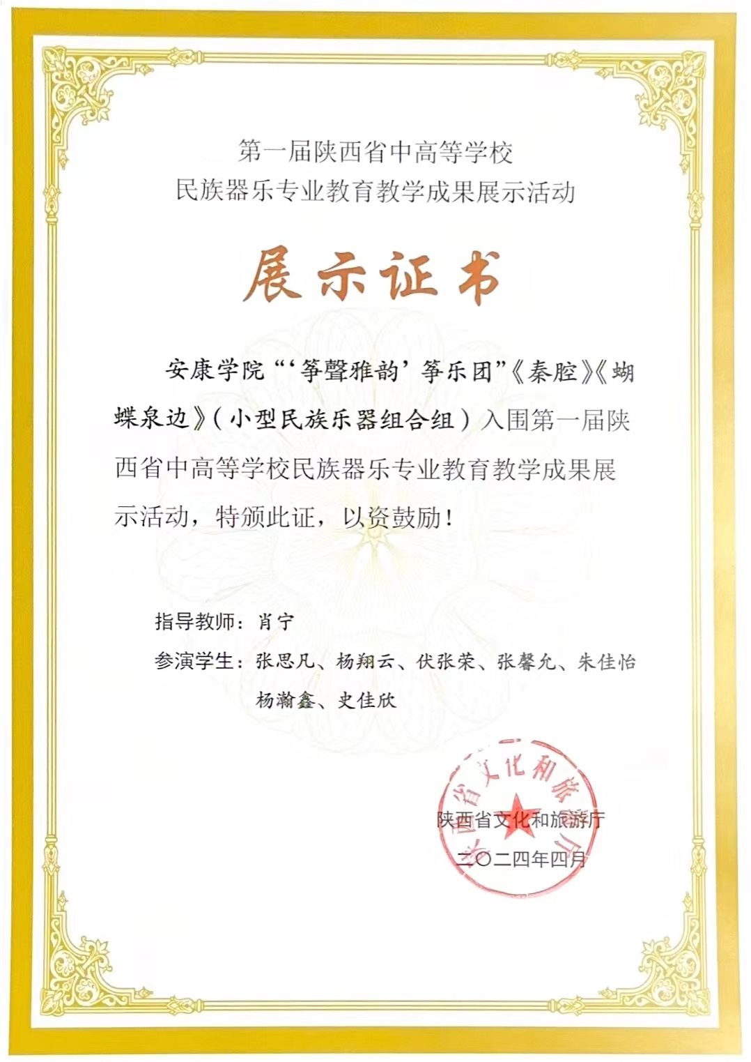 澳门信誉两项成果入选第一届陕西省中高等学校民族器乐专业教育教学成果展示活动